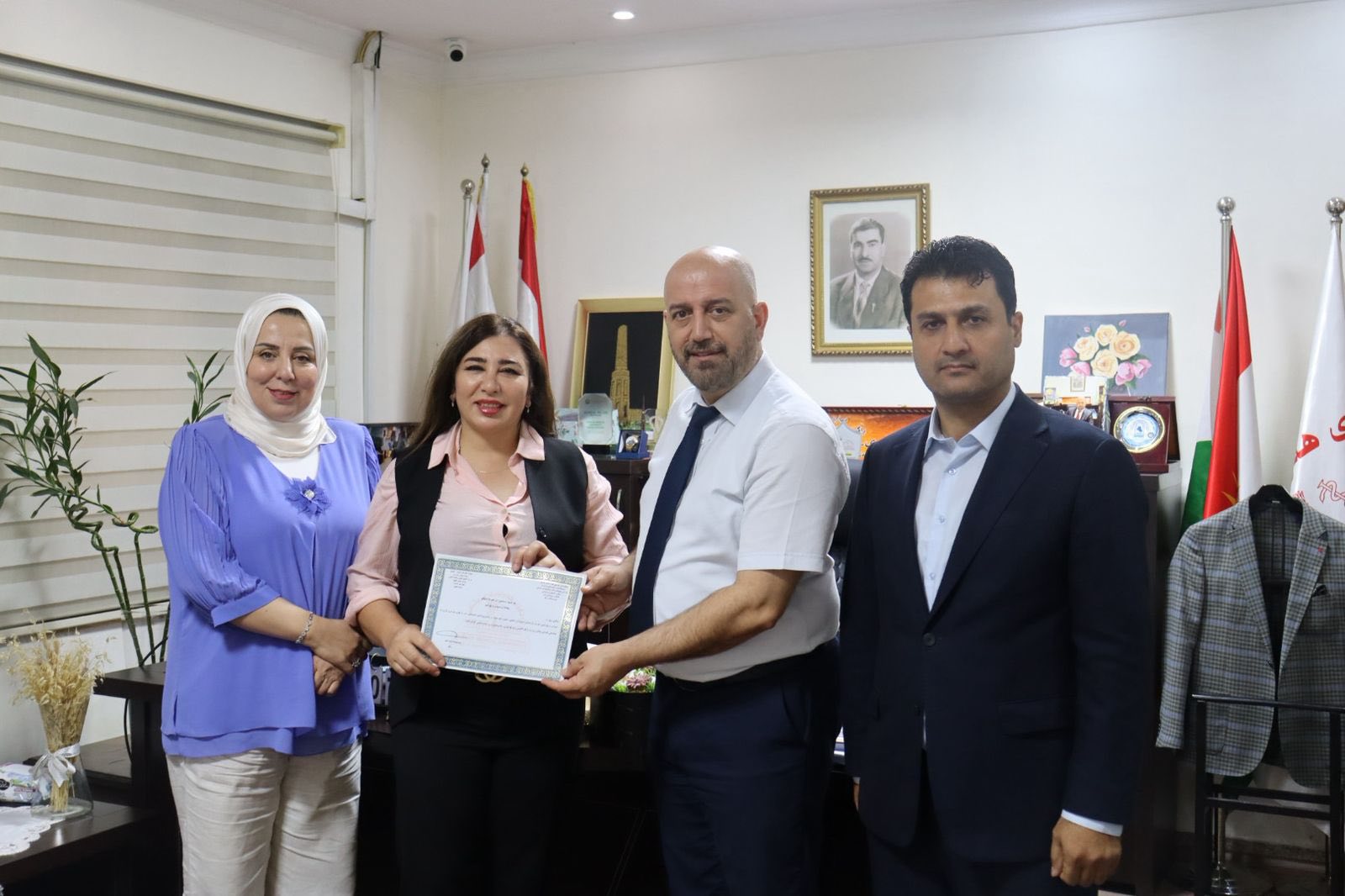 Finally, an appreciation award was given by the Dean of the College of Dentistry, Professor Dr. Bassam Karim Amin, the Dean of the College of Nursing, Assistant Professor Dr. Viyan Naqshbandi, and the Head of Health and Safety, to the staff of the seasonal flu vaccination team.