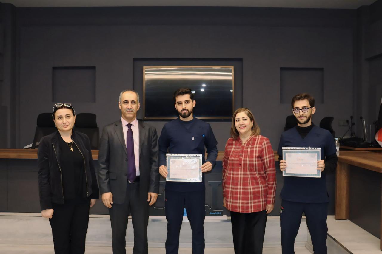 Under the supervision of the Dean of the College of Dentistry, Prof. Dr. Bassam Karim Amin, the Assistant Dean, Assist. Prof. Dr. Hemen Mohsen Suleiman, and the Director of Clinics, Assist. Prof. Dr. Hoshang Khalid, certificates of appreciation were awarded to the students.