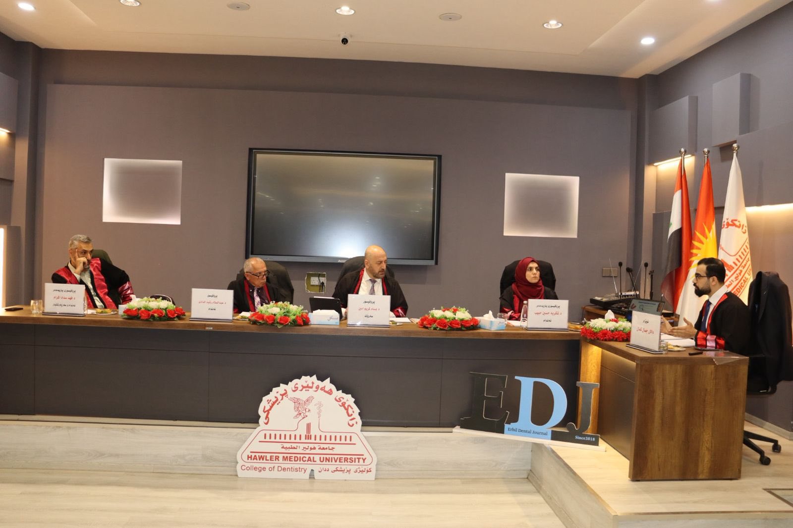 On Thursday, January 8, 2026, at 9:00 AM, the Master’s thesis defense of postgraduate student (Dalan Jamal Kamal) was held at Dr. Zewar Qassab Hall in the College of Dentistry. The thesis was titled: