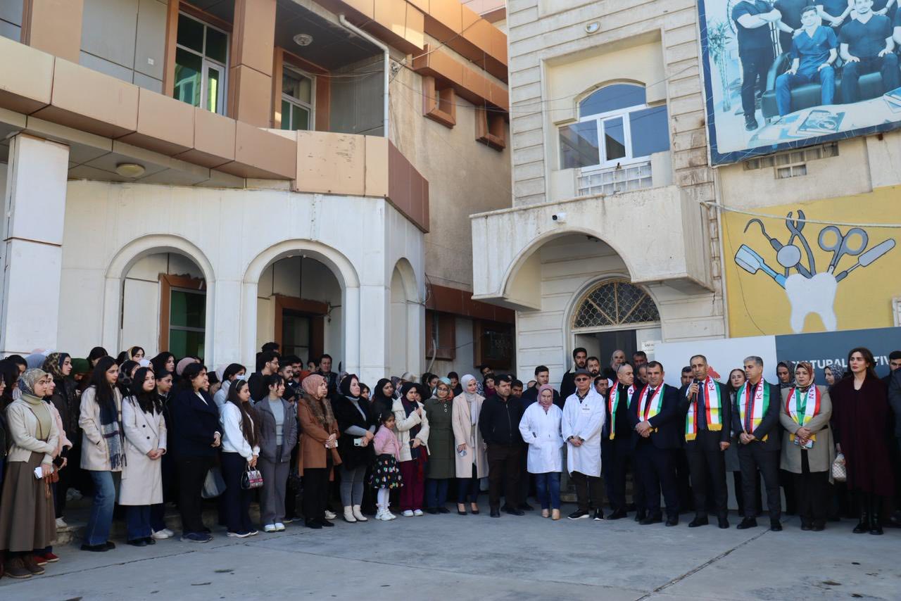 As the College of Dentistry, and as Kurdish individuals, we stand in support of our Kurdish brothers and sisters in Rojava. We uphold the message of peace and coexistence among all peoples and call for an end to the attacks, massacres, and genocide against the Kurds of Rojava. For this purpose, our faculty, staff, and students held a civil and peaceful assembly in the college courtyard.