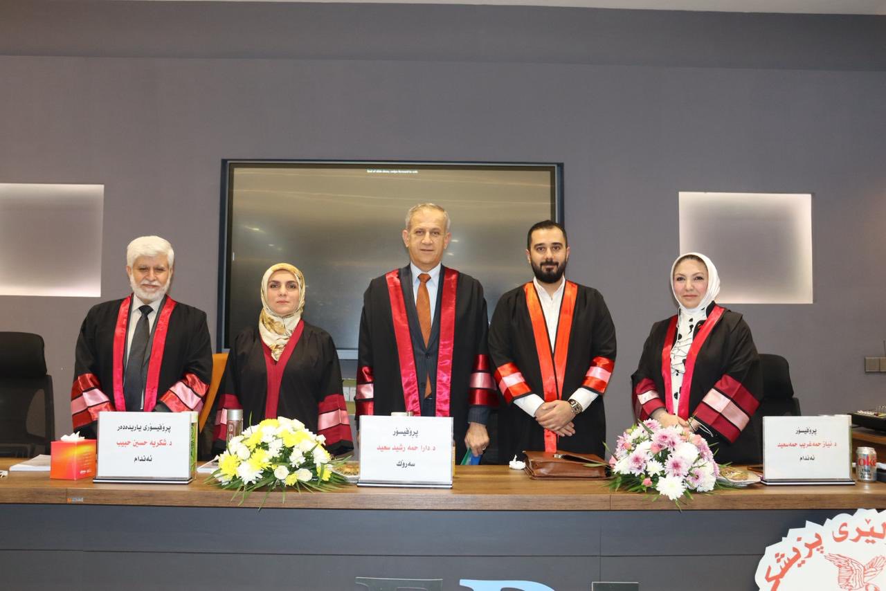On Thursday, February 5, 2026, at 9:00 AM, the Master’s thesis defense of the postgraduate student Rozh Sabahaddin Hamid was held at the Dr. Zewer Qassab Hall in the College of Dentistry. The thesis was titled: