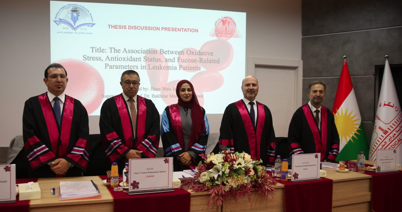 OnSunday , October 26, 2025, at 10:000 AM, in Confrence hall of the college of Health Sciences, a master's thesis defense was held for postgraduate student ( Jihan Wais Jalil ) under the