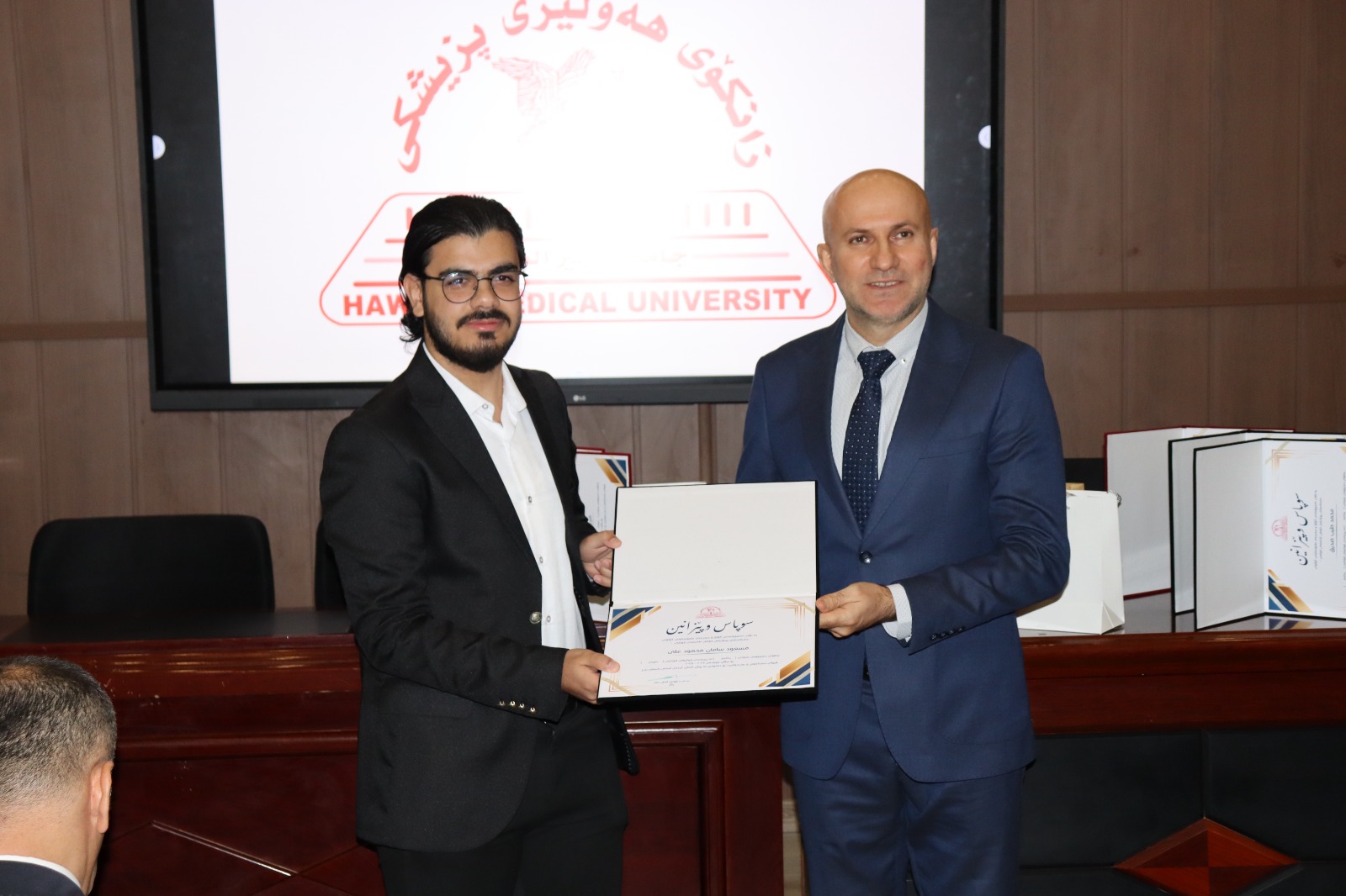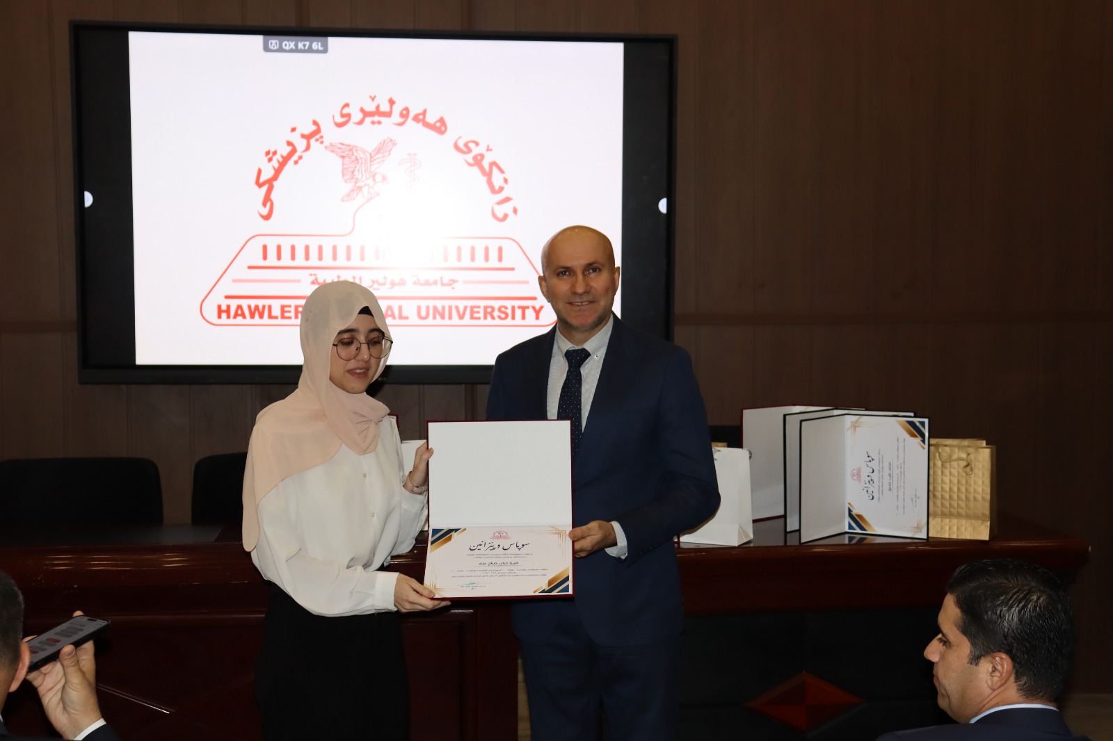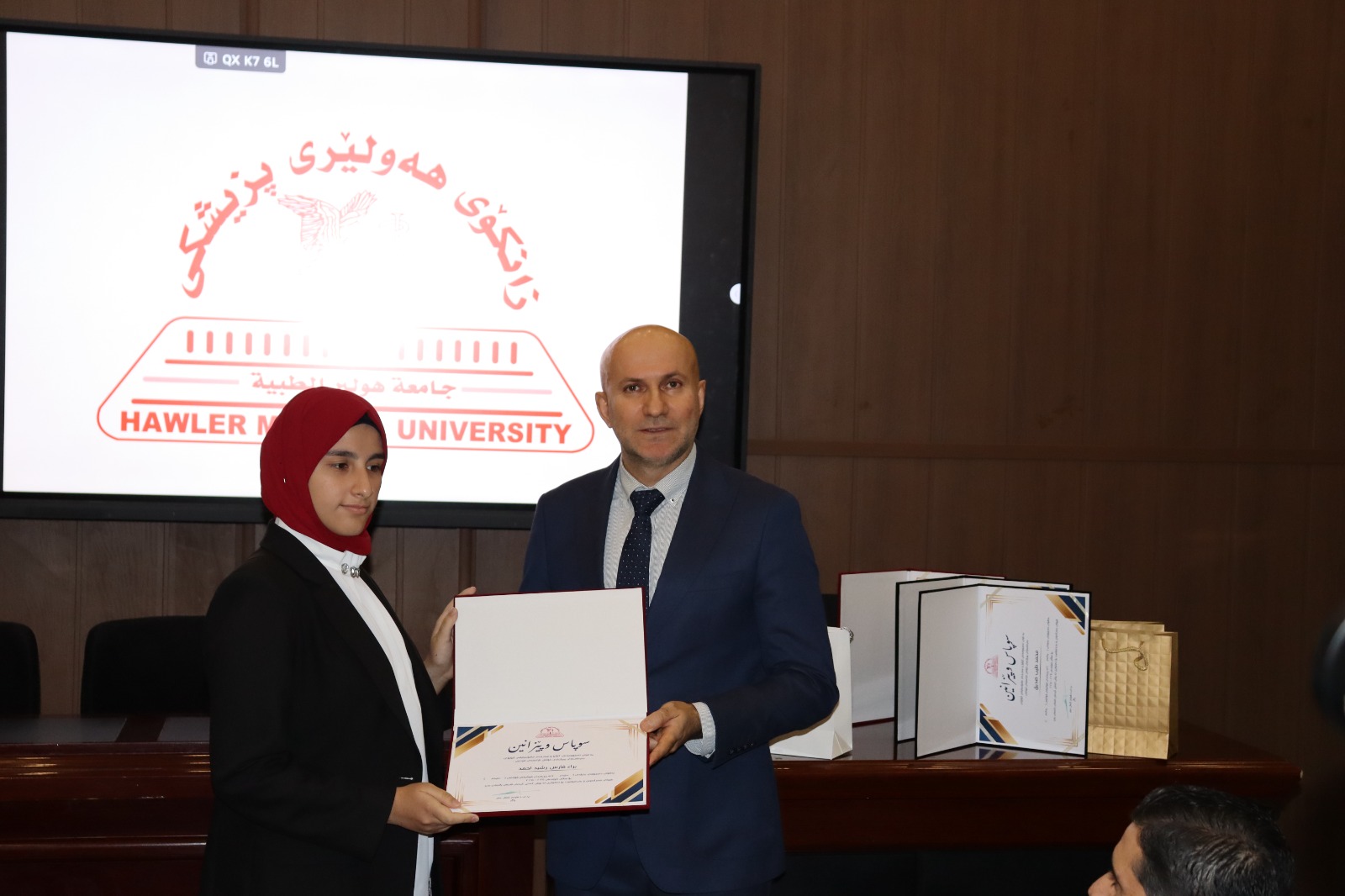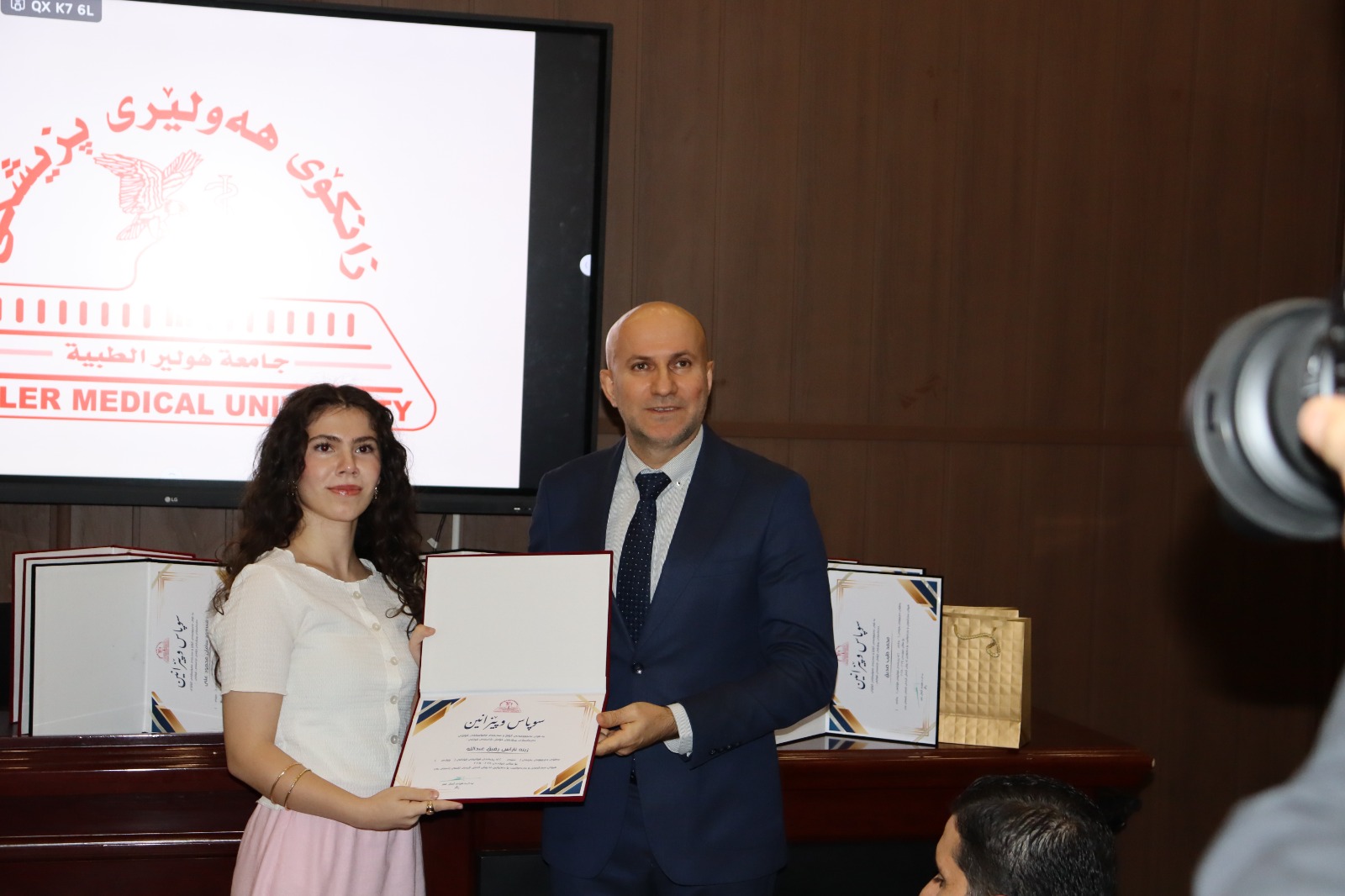 ئەمڕۆ سێ شەممە ڕێکەوتی ( ١٦/٩/٢٠٢٥ ) بە ئامادەبوونی بەرێز (پ.ی.د.هاورێ مصطفی بکر) سەرۆکی زانکۆی هەولێری پزیشکی و بەرێز ( پ.ی.د.کاروان محمدامین ) یاریدەدەری سەرۆکی زانکۆ بۆ کاروباری قوتابیان لە ژێر سەرپەرشتی بەڕێز (پ.ی.د. هونەر کەمال گەردی) ، مەراسیمی رێزلێنان لە سێ یەکەمی کۆلێژ ئەنجامدرا و سەرەتا بە ووتاری بەرێز ڕاگری کۆلێژ دەستیپێکردوو دواتریش چەند ووتە یەکی بەنرخ پێشکەشکرا لە لایەن بەرێز پ.ی.د. بەشدار محمود و نوێنەری قوتابیە یەکەمەکان. لە کۆتاییشدا خەڵات و سوپاس و پێزانین بەخشرا بە قوتابیە سێ یەکەمەکەی قۆناغەکانی کۆلێژی دەرمانسازی