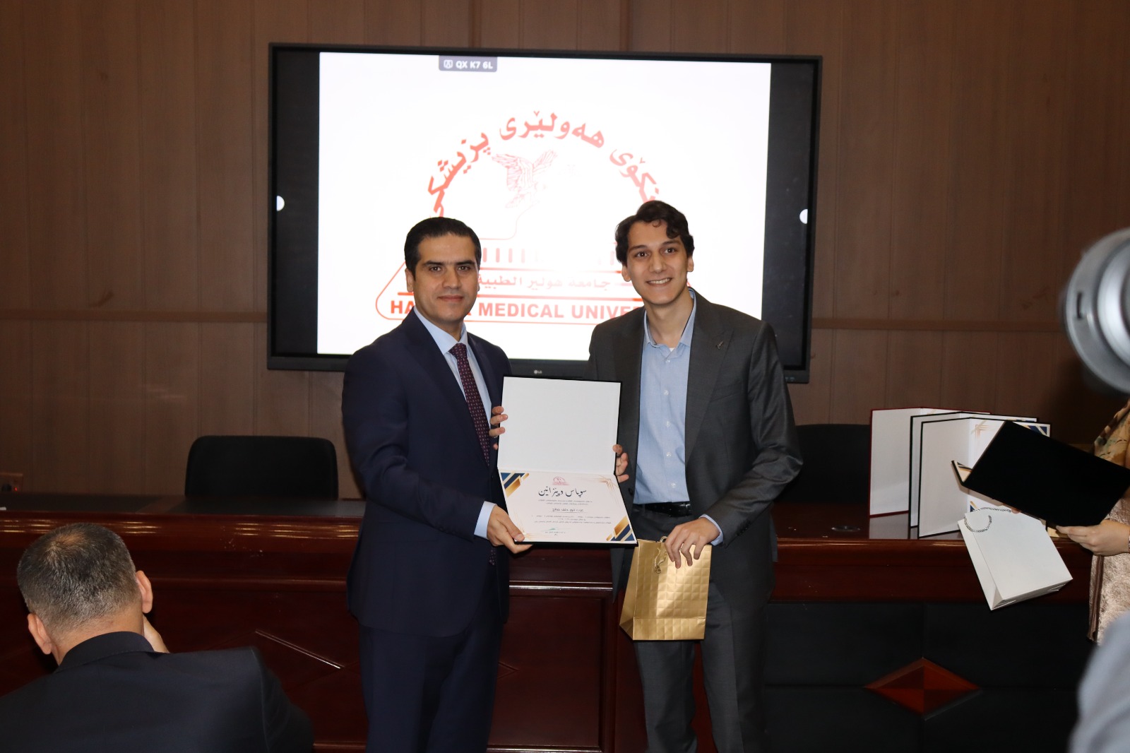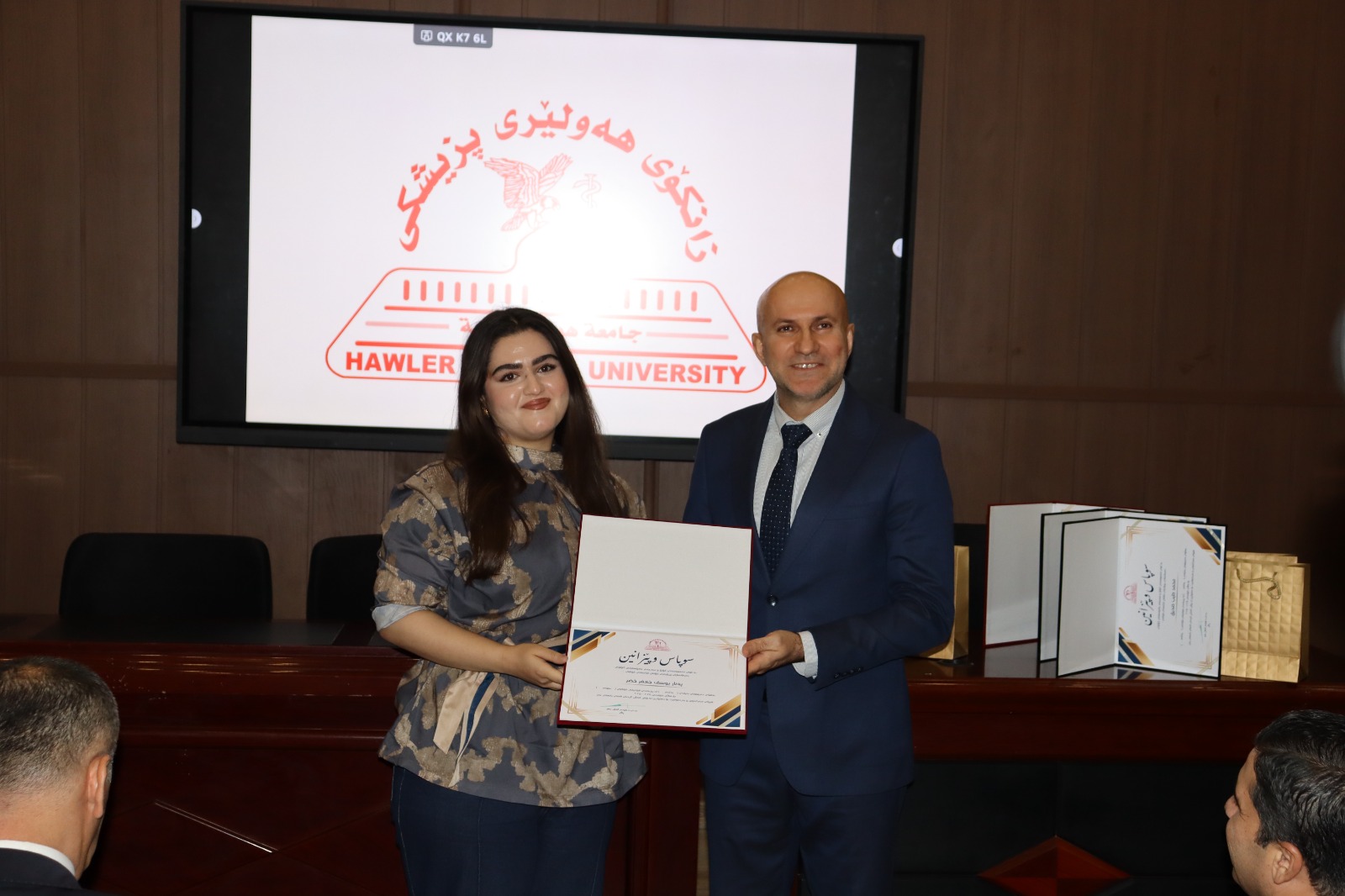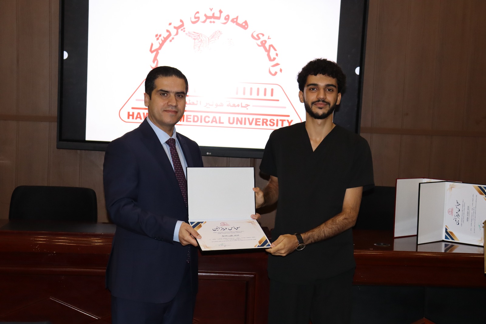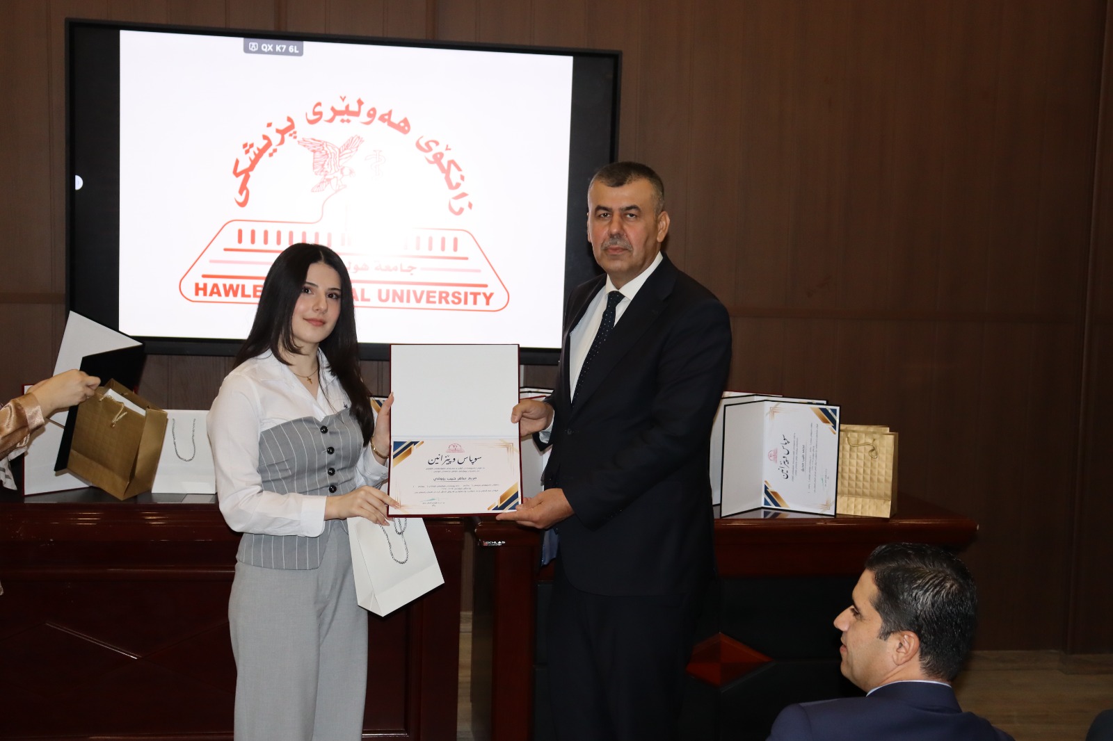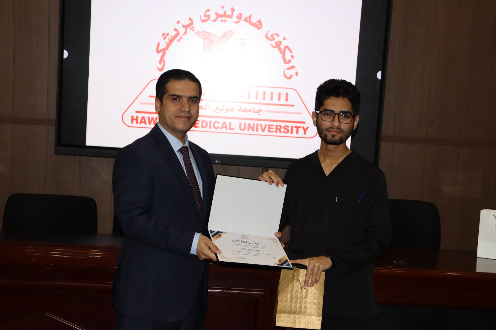ئەمڕۆ سێ شەممە ڕێکەوتی ( ١٦/٩/٢٠٢٥ ) بە ئامادەبوونی بەرێز (پ.ی.د.هاورێ مصطفی بکر) سەرۆکی زانکۆی هەولێری پزیشکی و بەرێز ( پ.ی.د.کاروان محمدامین ) یاریدەدەری سەرۆکی زانکۆ بۆ کاروباری قوتابیان لە ژێر سەرپەرشتی بەڕێز (پ.ی.د. هونەر کەمال گەردی) ، مەراسیمی رێزلێنان لە سێ یەکەمی کۆلێژ ئەنجامدرا و سەرەتا بە ووتاری بەرێز ڕاگری کۆلێژ دەستیپێکردوو دواتریش چەند ووتە یەکی بەنرخ پێشکەشکرا لە لایەن بەرێز پ.ی.د. بەشدار محمود و نوێنەری قوتابیە یەکەمەکان. لە کۆتاییشدا خەڵات و سوپاس و پێزانین بەخشرا بە قوتابیە سێ یەکەمەکەی قۆناغەکانی کۆلێژی دەرمانسازی