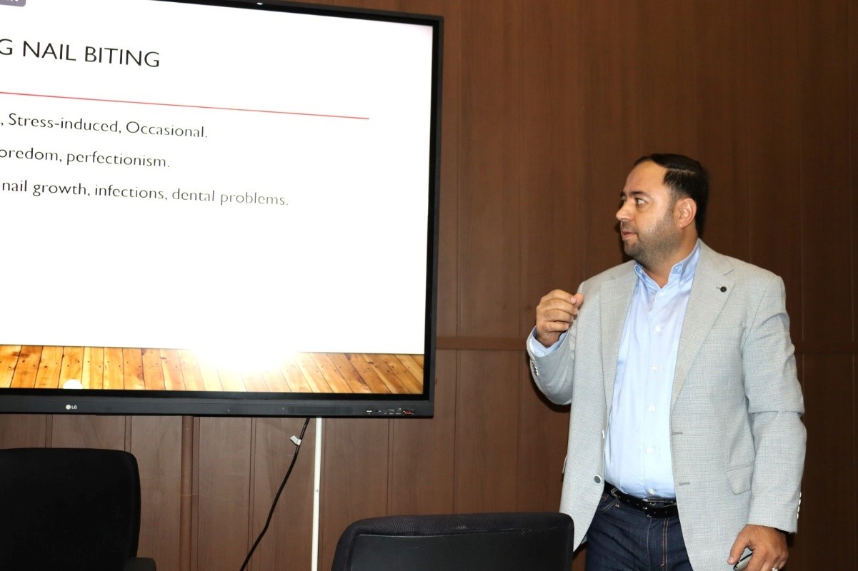 Summary description in the English Language: The goal of scientific research of nail biting is a complex behavior strongly linked to mental state, serving as both a symptom of underlying stress or anxiety and a cause of further psychological distress.