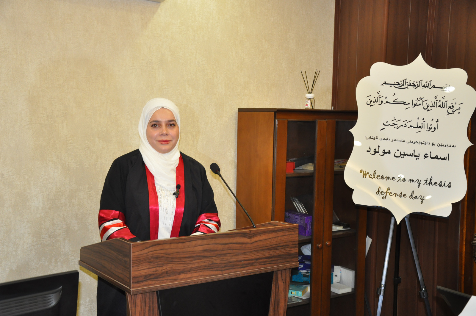 The College extends its sincere congratulations to Ms. Asmaa Yaseen Mawlood for this academic achievement and wishes her continued success in her professional and scholarly journey.