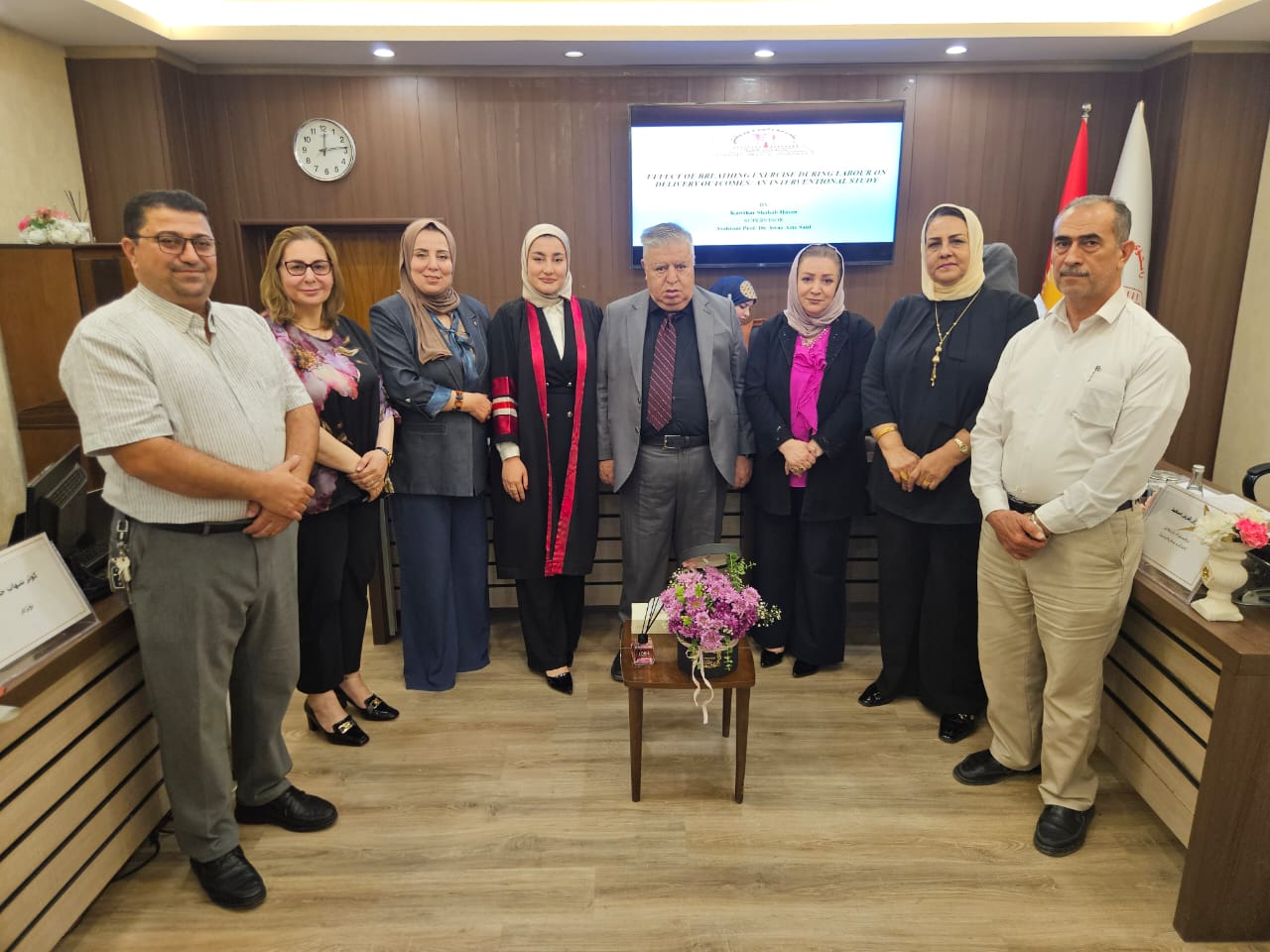 The College of Nursing extends its heartfelt congratulations and pride to researcher Kawsar Shahab Hassan for this academic achievement, becoming the second person in Iraq to obtain a Master’s degree in Midwifery. The college wishes her continued success in her future professional and academic endeavors.