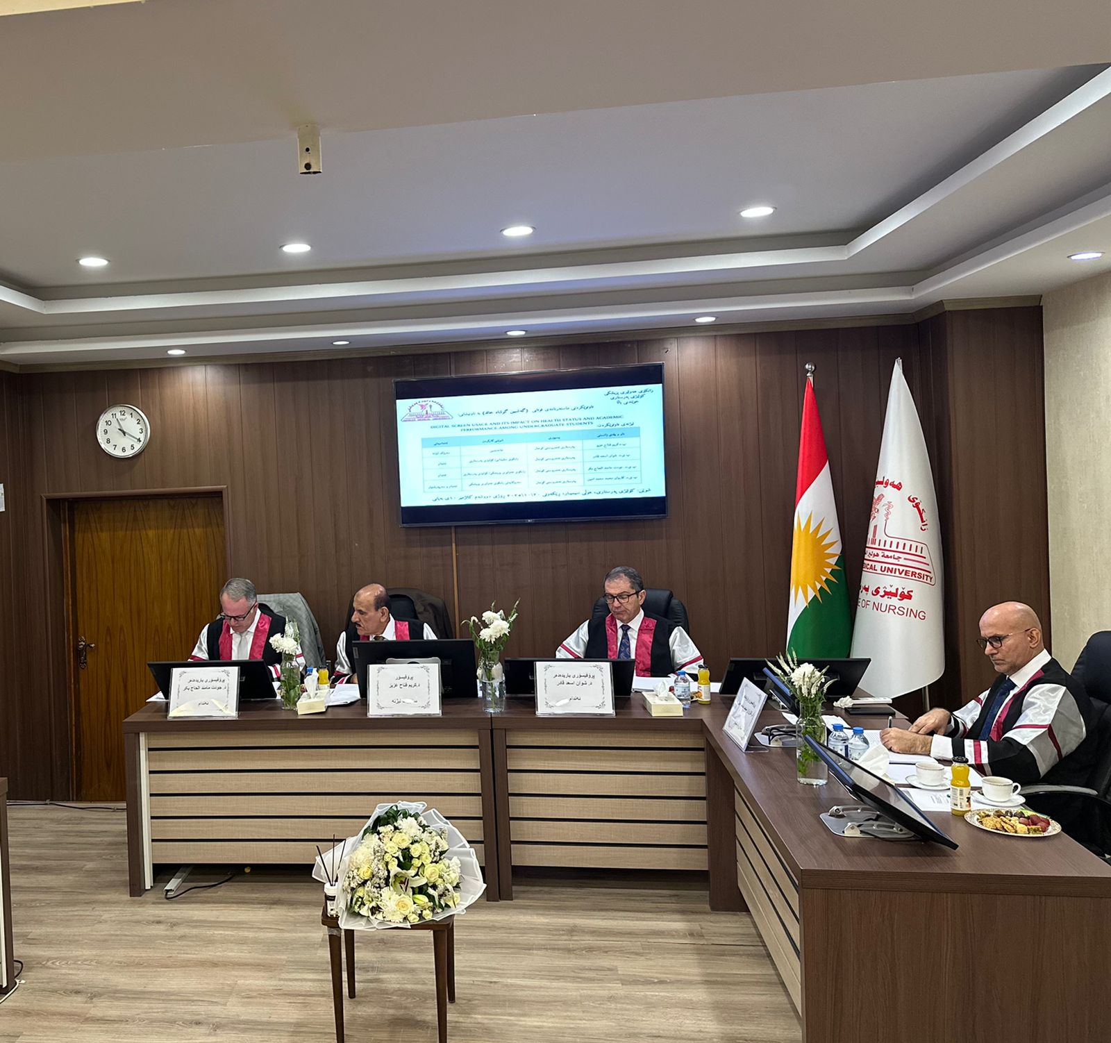 The College of Nursing – Hawler Medical University proudly announces the successful defense of Ms. Gashbin Gushad Khalid’s master’s thesis, held on October 20, 2025.