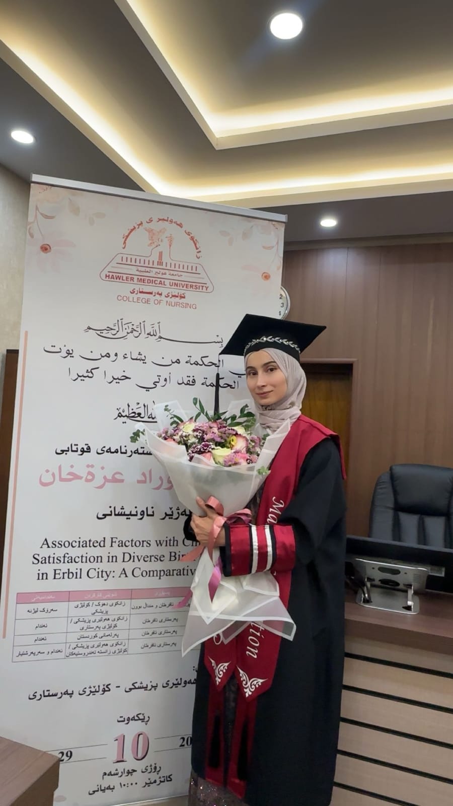 The College of Nursing at Hawler Medical University is proud to extend its heartfelt congratulations to Master’s candidate Amina Murad Izzat Khan on the successful defense of her thesis entitled:
