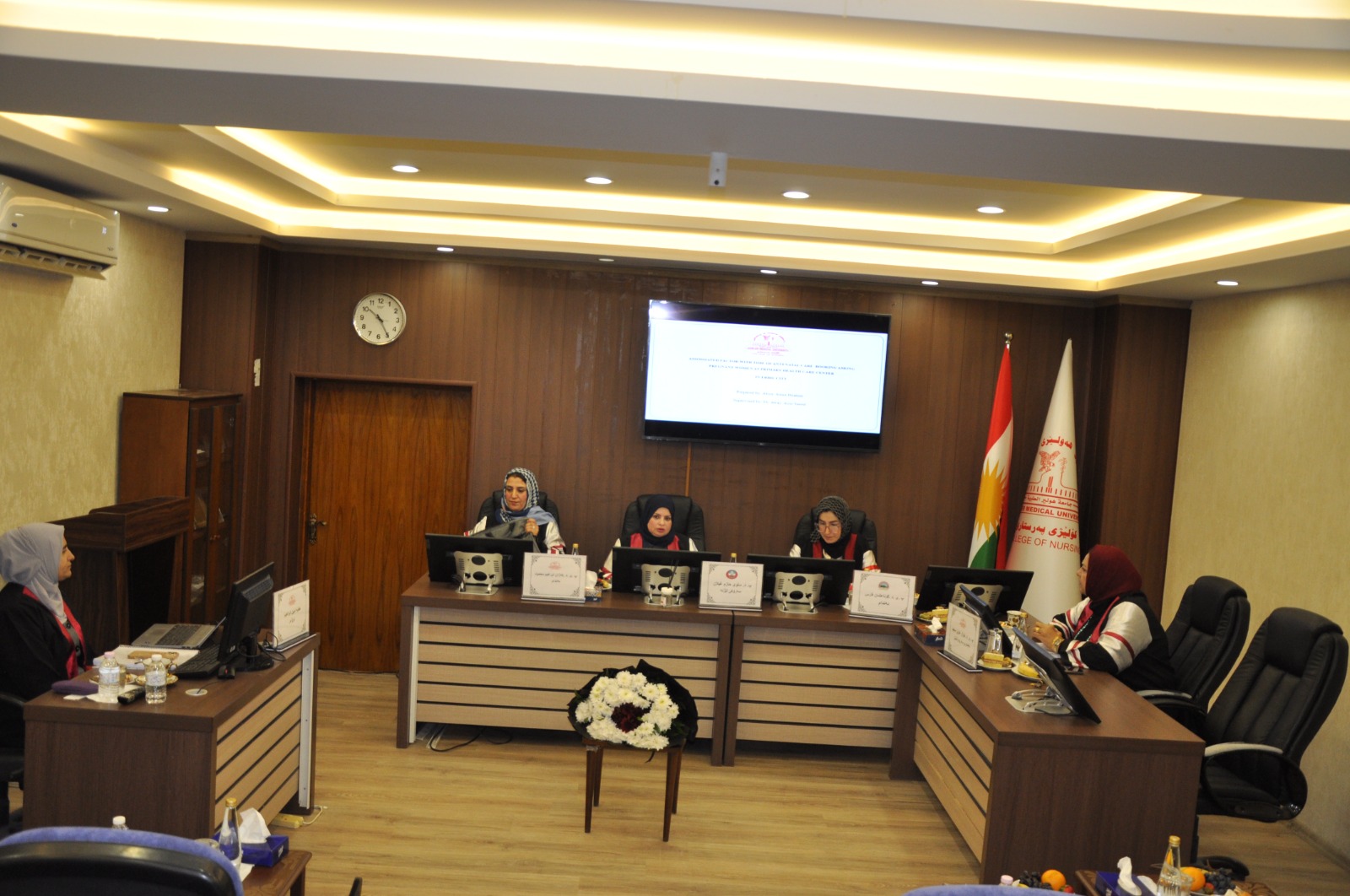 The thesis defense was held in the presence of Assist. Prof. Dr. Vian Naqshbandi, Dean of the College of Nursing.