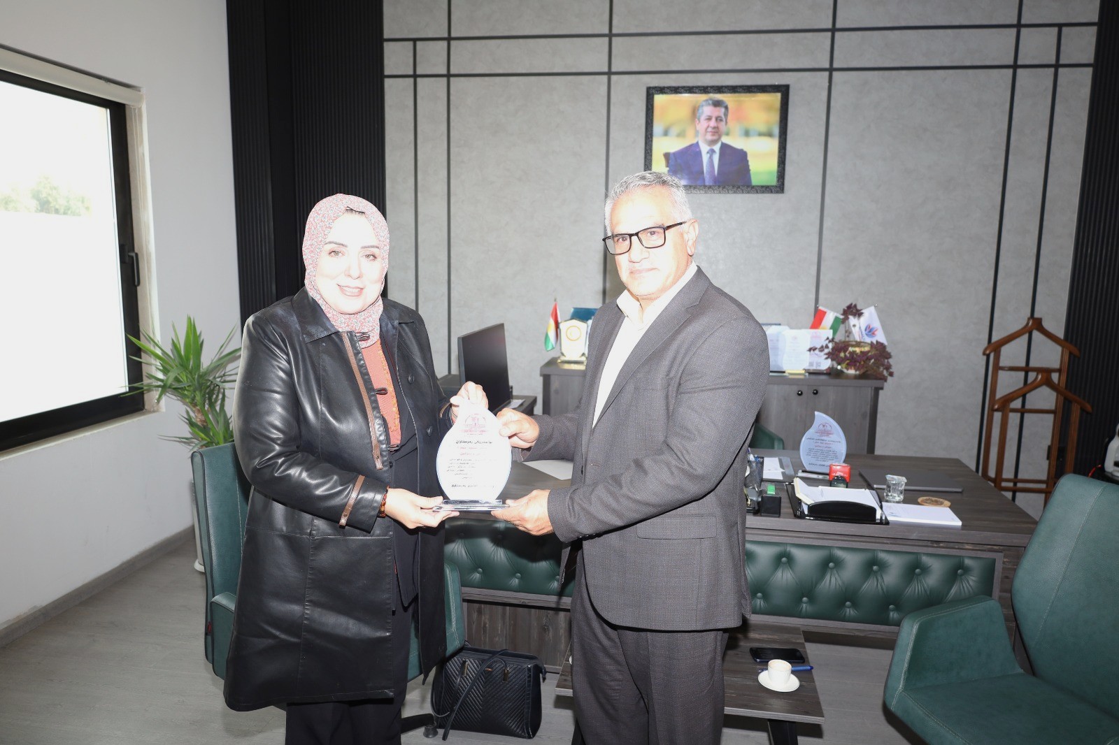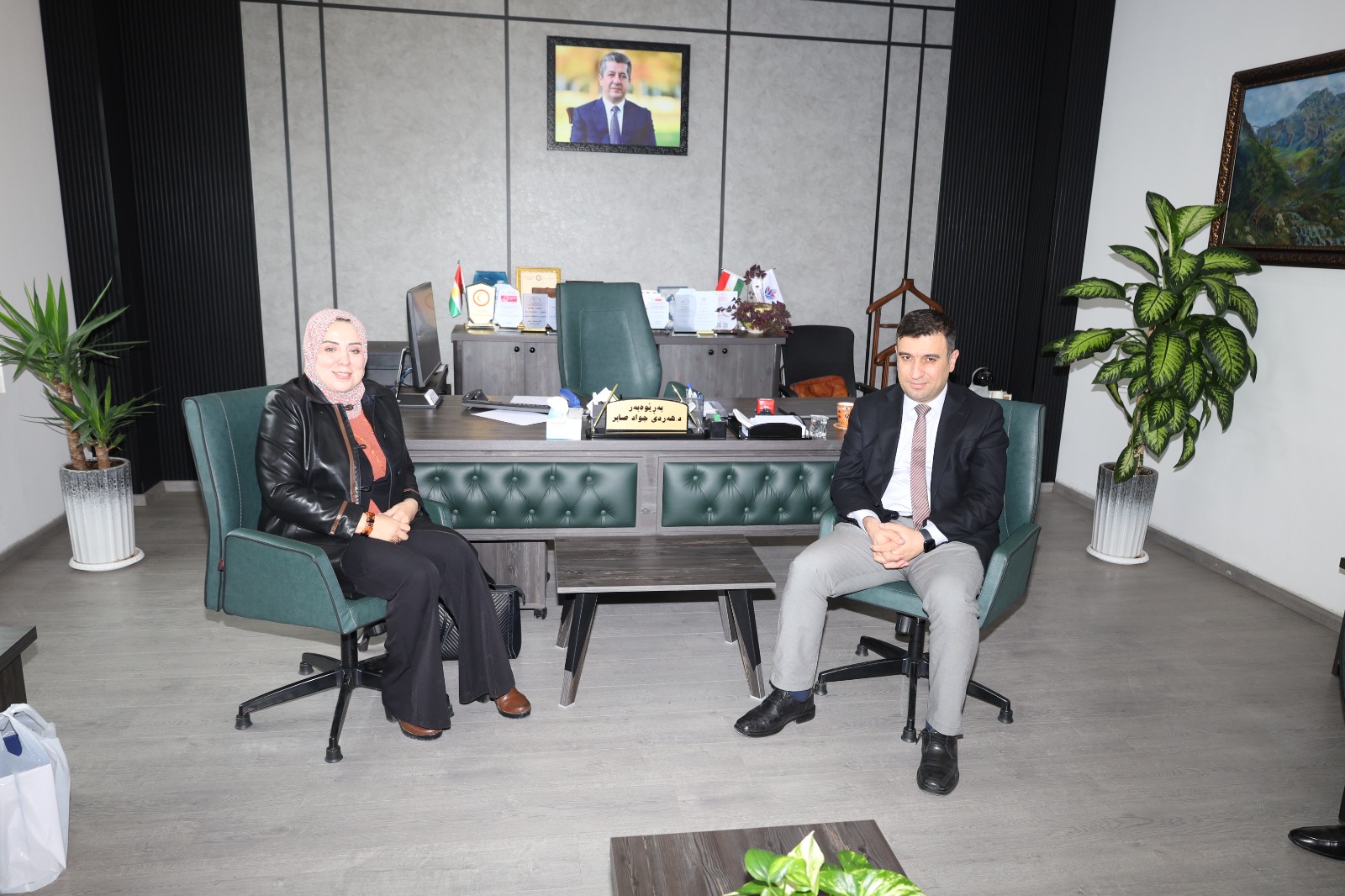Assistant Professor Dr. Vian Naqshbandi, Dean of the College of Nursing at Hawler Medical University, conducted an official visit to Nanakali Hospital for Hematology and Oncology, where she met with Dr. Harde Jawad Sabeer, Director of the Hospital.