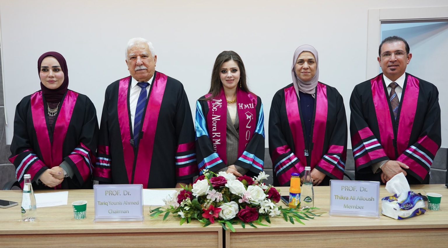 View DetailsOn Thursday , October 30, 2025, at 10:000 AM, in Confrence hall of the college of Health Sciences, a master's thesis defense was held for postgraduate student ( Noora Abdulkarim Mansoor ) under the Ti