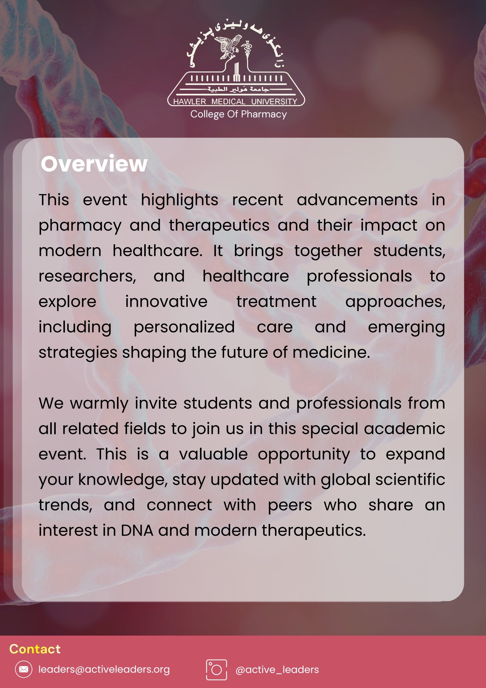 Announcements College of Pharmacy Pharmacy Announcements 05 April 2026 Hits: 124 Marking International DNA Day a Scientific Gathering Print Email User Rating: 5 / 5 Please Rate Vote 1 Vote 2 Vote 3 Vote 4 Vote 5 Marking International DNA Day a Scientific Gathering Next