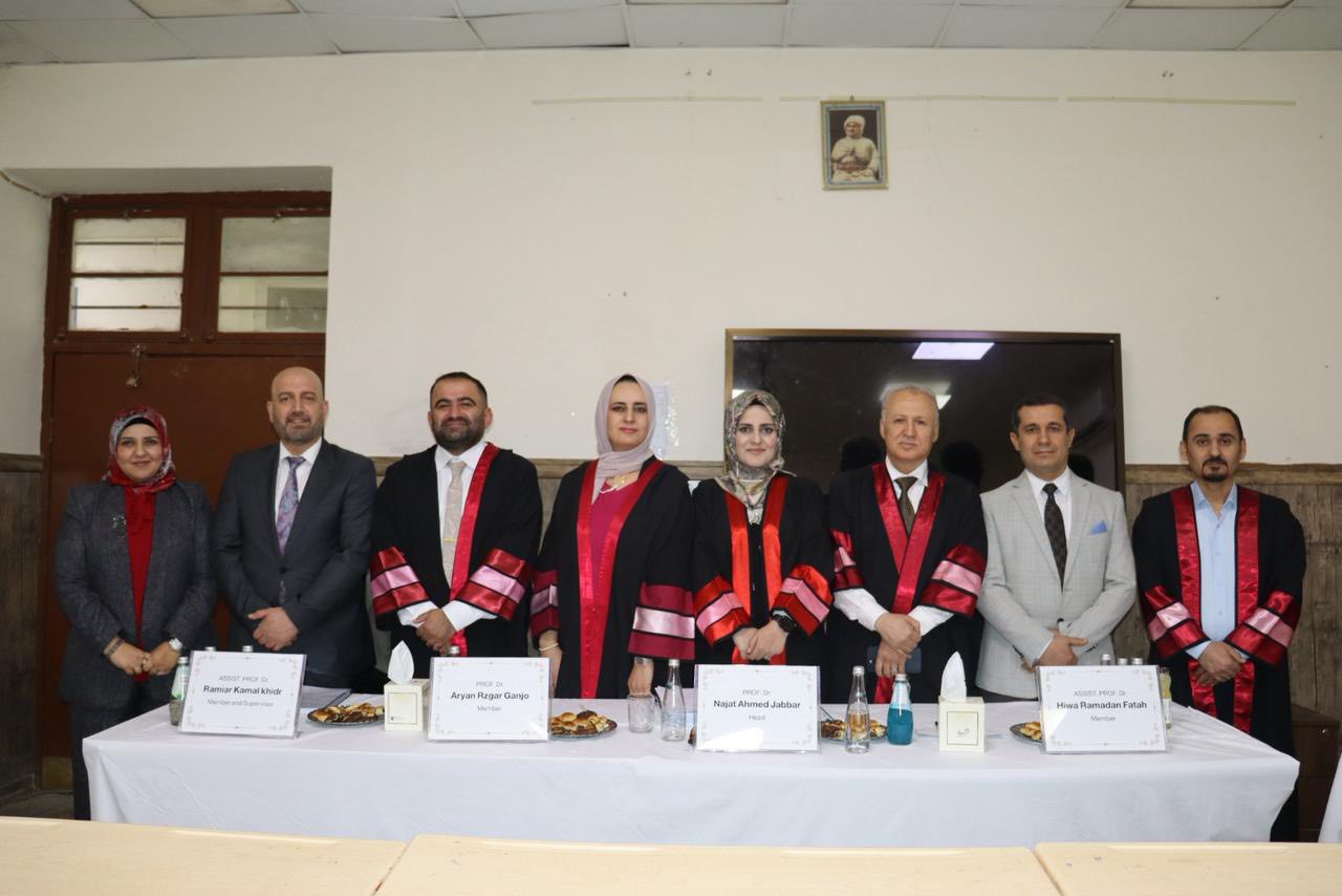 On Sunday, October 19, 2025, at 9:00 AM, in Hall No. 6 of the College of Dentistry, a master's thesis defense was held for postgraduate student (Sara Redar Yassin) under the title: