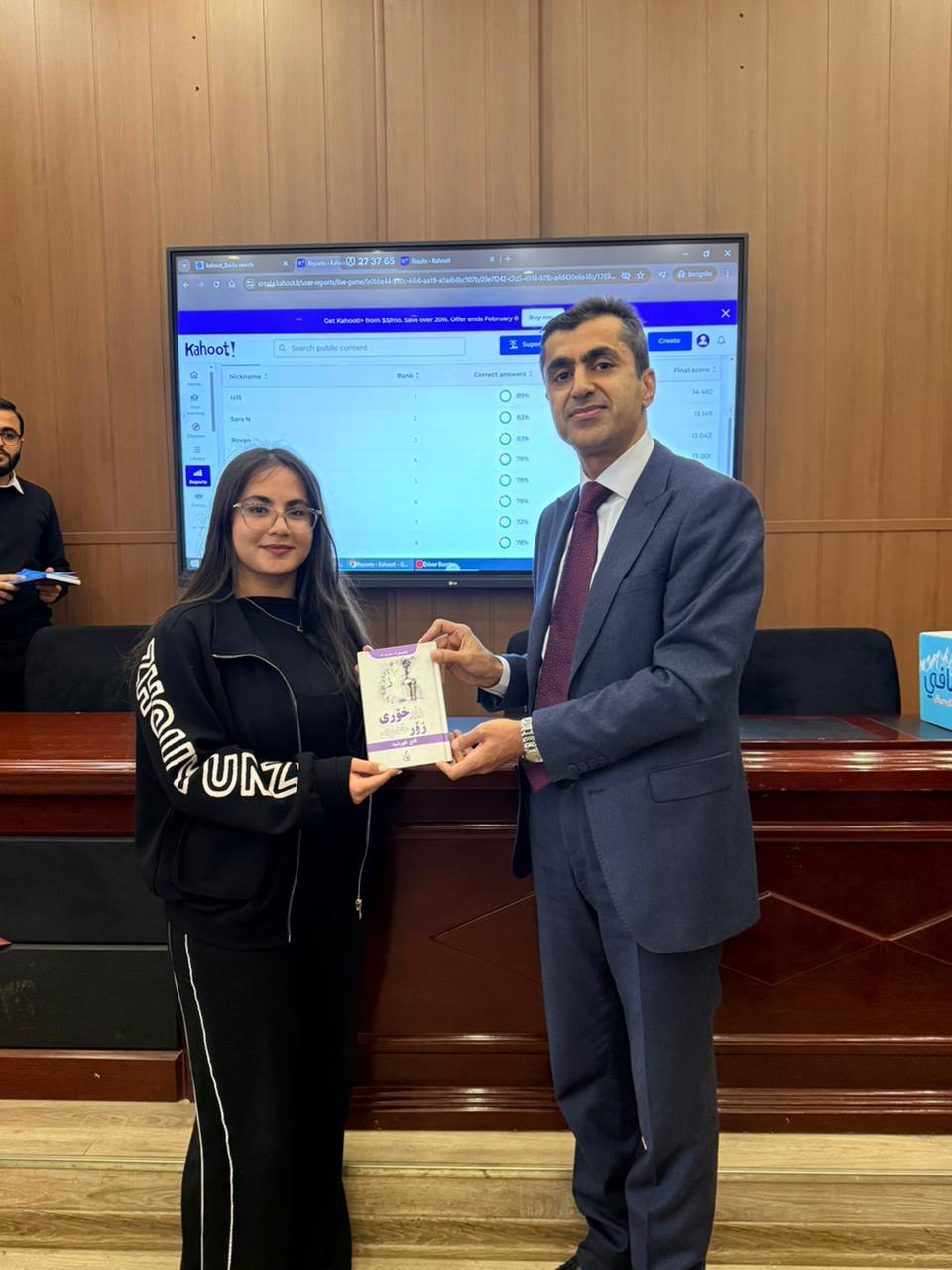 The activity concluded with a Kahoot quiz (18 questions), the top eight students who achieved the highest scores were awarded books donated by their peers, promoting a culture of learning, support, and knowledge sharing.