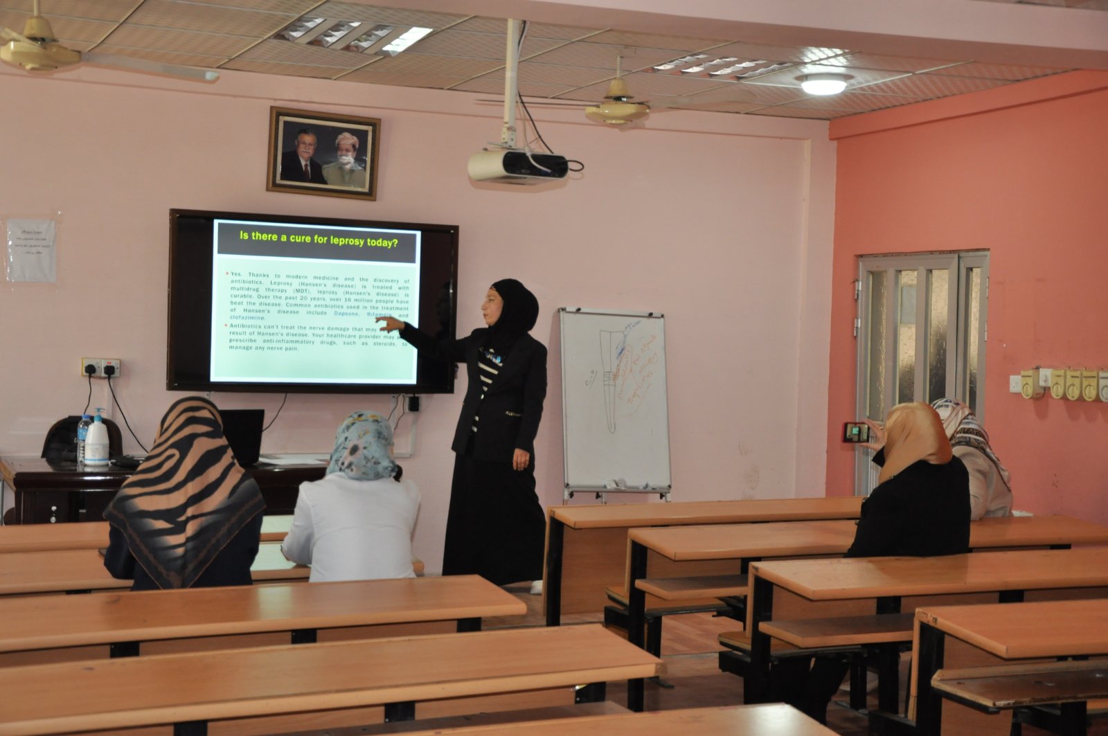 On Sunday 12/02/2023, a Seminar was presented by Mrs. Fattma Zrar Mohammed, Assistant Lecturer, College of Nursing / Hawler Medical University in College of Dentistry about “ The Mycobacterium Lepare, the cause of Leprosy”.
