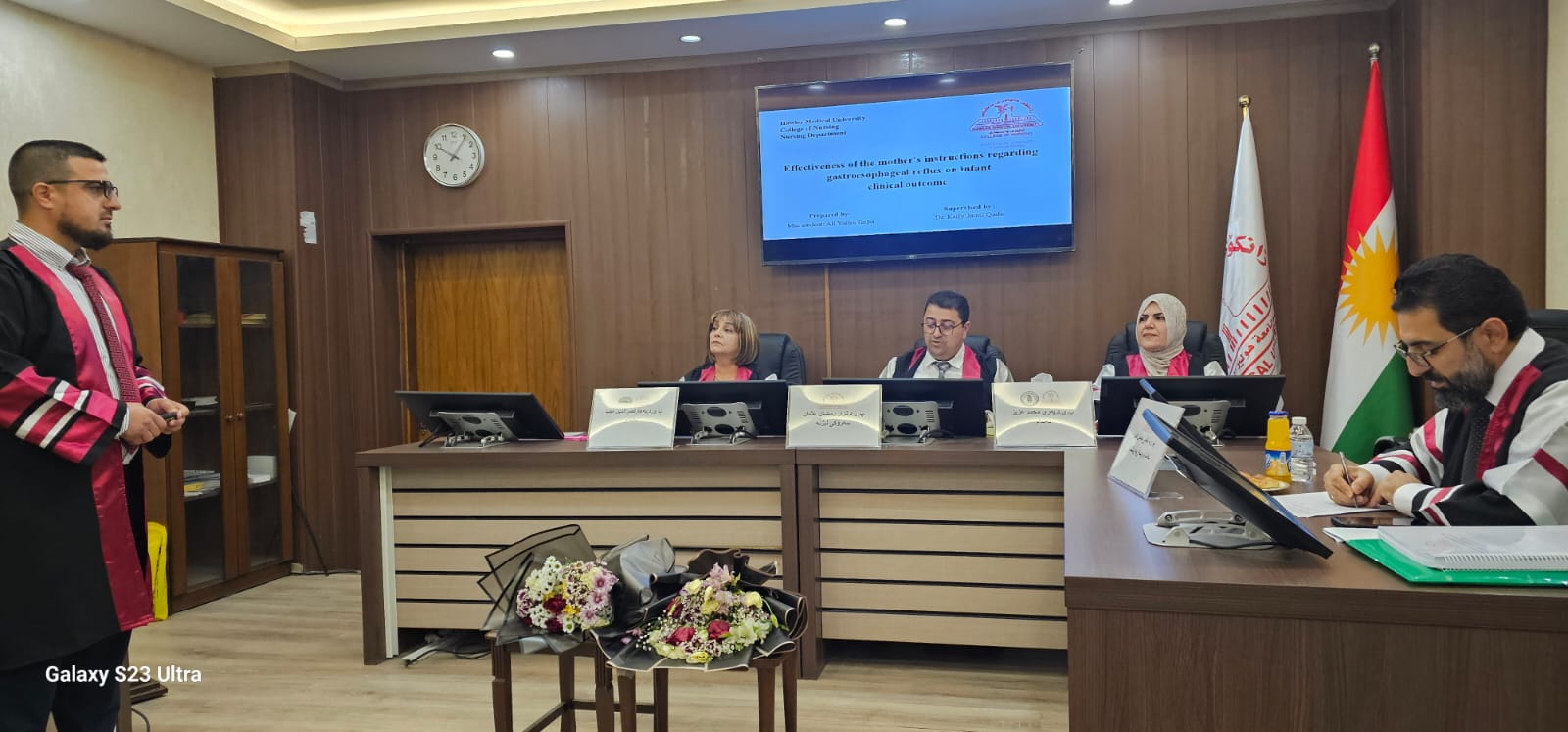 Congratulations to higher education student Ali Yahya Tifoor whose master's degree was discussed on 28-9-2025 in the presence of the Dean, Assistant Dean, Head of Higher Education, Quality Assurance Officer, Head of Activities Department, teachers and students related to the master's degree. The review committee consisted of (Chairman Assist. Prof. Nizar Ramadan Osman, Members: Assist. Prof. Peri Mohammed Aziz, Assist. Prof. Bahar Nasraddin Majid, and Supervisor Assist. Prof. Kifi Jamil Qadir). We wish him further success in his career.