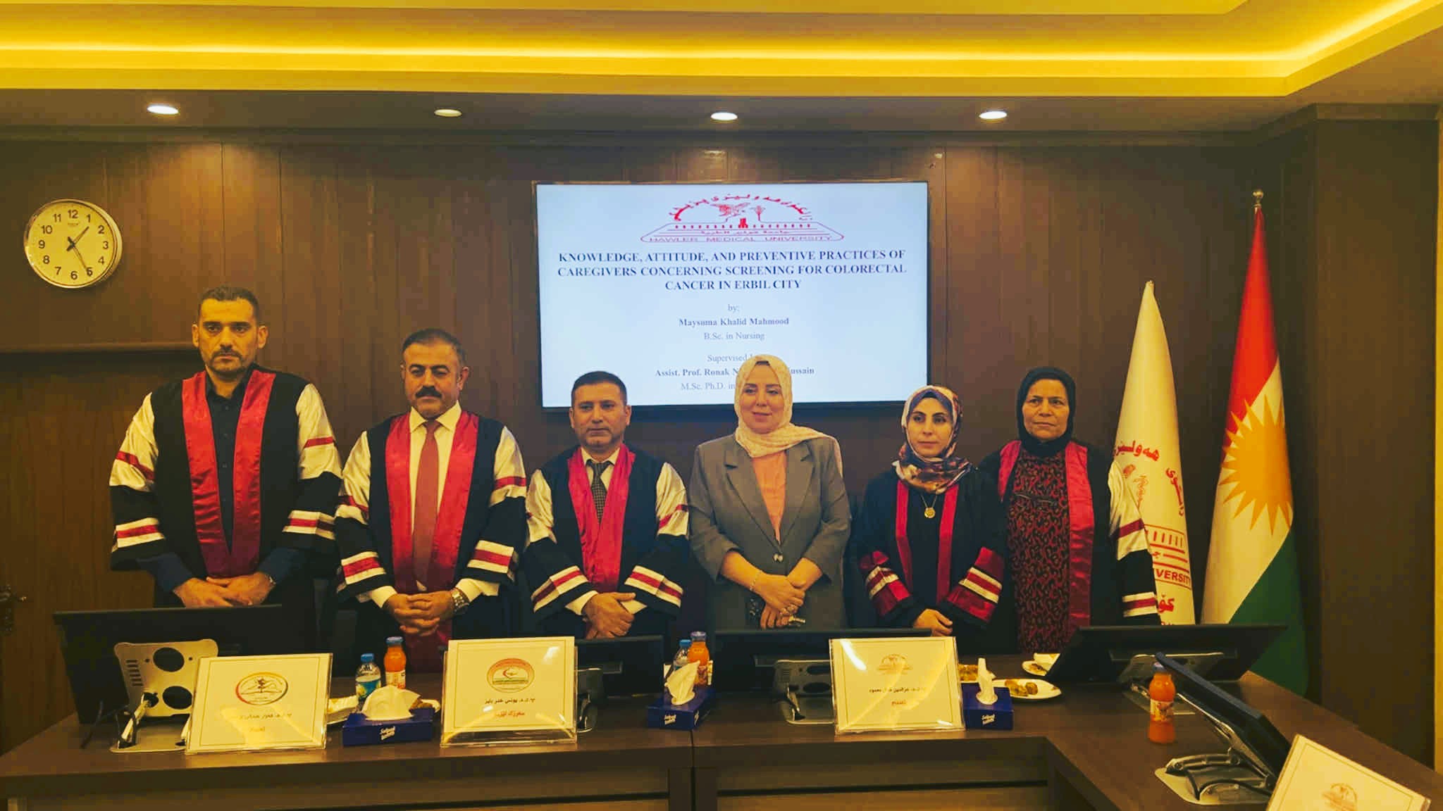 The College of Nursing proudly congratulates postgraduate student Maisooma Khalid Mahmood on the successful defense of her Master’s thesis titled “Knowledge, Attitude, and Preventive Practices of Caregivers Concerning the Screening Program for Colorectal Cancer in Erbil City.”