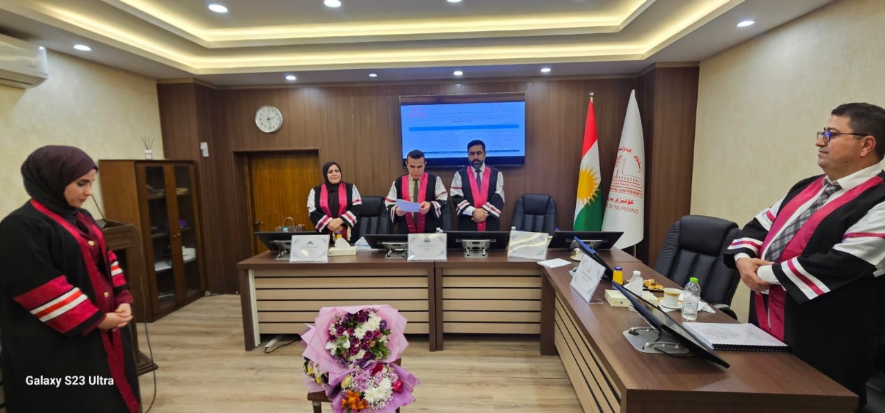 The College of Nursing – Hawler Medical University proudly congratulates Ms Shaimaa Shwan Abdullah on the successful defense of her master’s thesis, held on October 19, 2025.