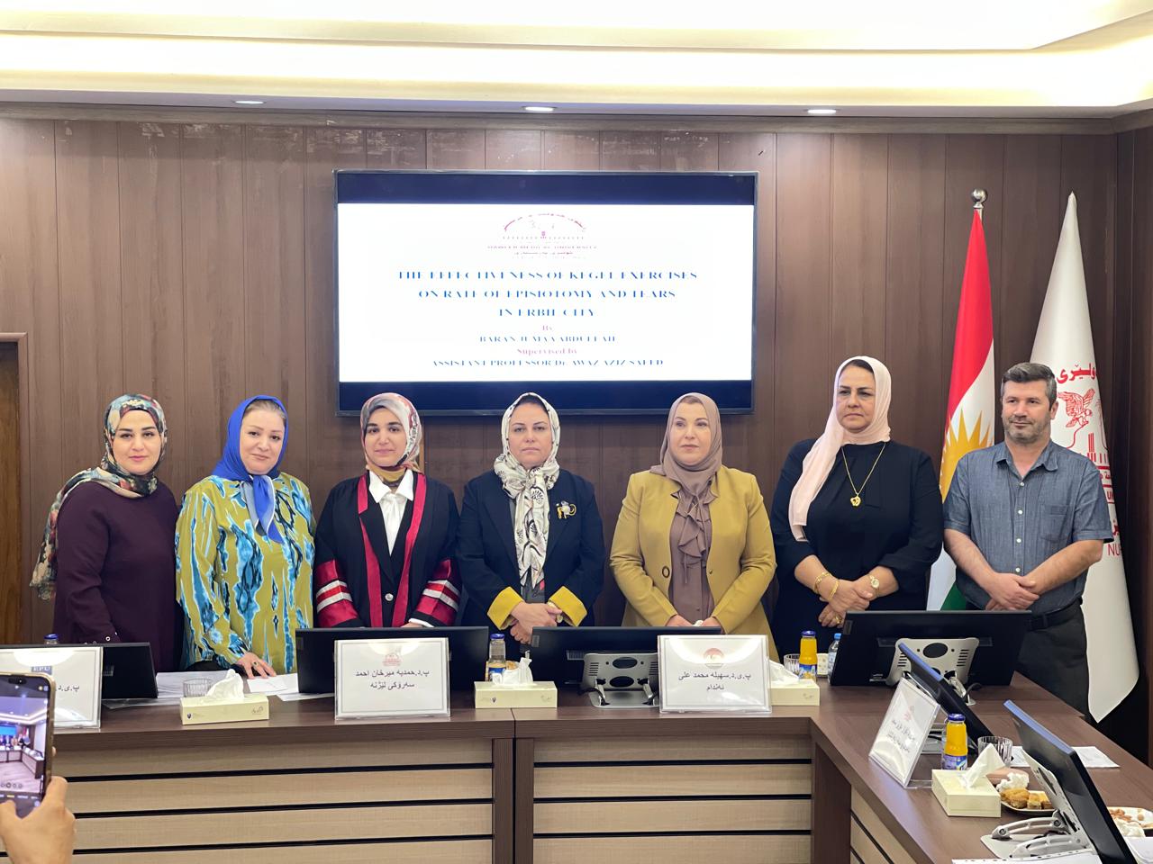 The defense session was held with the support and presence of Assist. Prof. Dr. Vian Naqshbandi, Dean of the College of Nursing, alongside distinguished faculty members and guests.