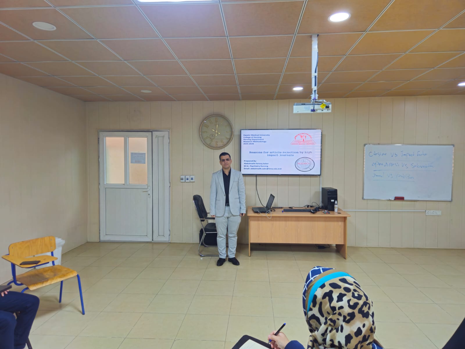 The session was delivered by Assist. Lect. Malik Fariq Sabir, a distinguished faculty member in the College of Nursing. During the workshop, he provided a detailed and practical explanation of the key reasons behind manuscript rejection, including issues related to poor methodological design, inadequate literature review, weak problem statements, unclear research aims, insufficient data analysis, and failure to follow journal-specific formatting and ethical requirements.