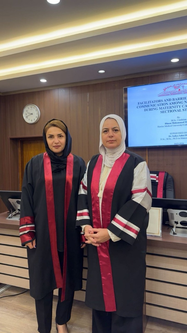 The committee commended the candidate for the scientific rigor of her study, the relevance of the topic to improving maternity care, and the clarity with which she addressed key communication challenges faced by nurses and midwives in clinical settings across the Kurdistan Region.