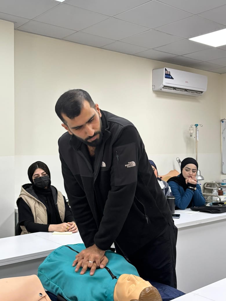 The scientific and practical sessions were delivered by Mr. Rebeen Mohammed Hariri. The workshop aimed to equip midwifery students with comprehensive theoretical knowledge, advanced practical skills, and enhanced clinical confidence to early identify maternal deterioration and to deliver timely, pregnancy-adapted basic emergency care and Basic Life Support (BLS).
