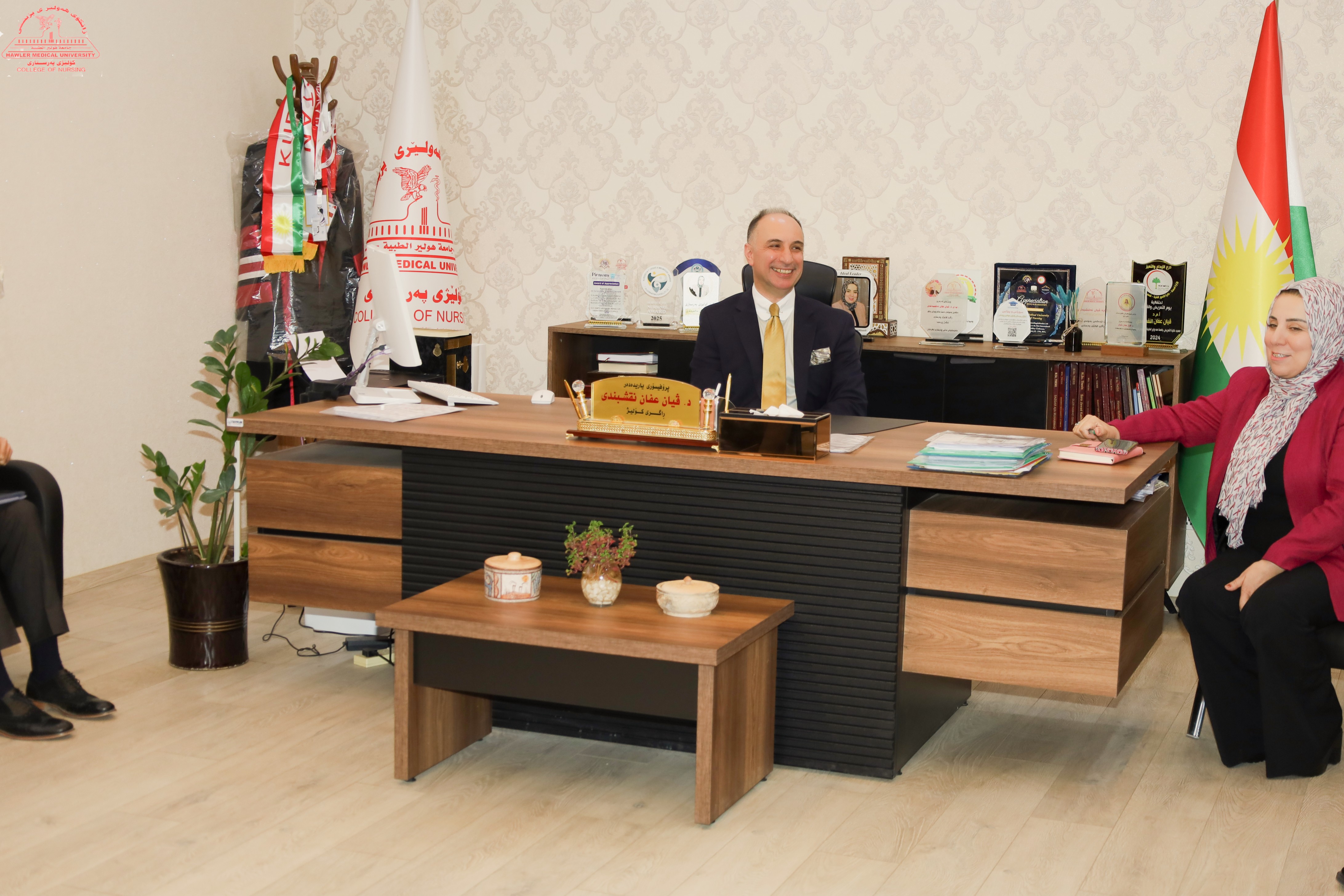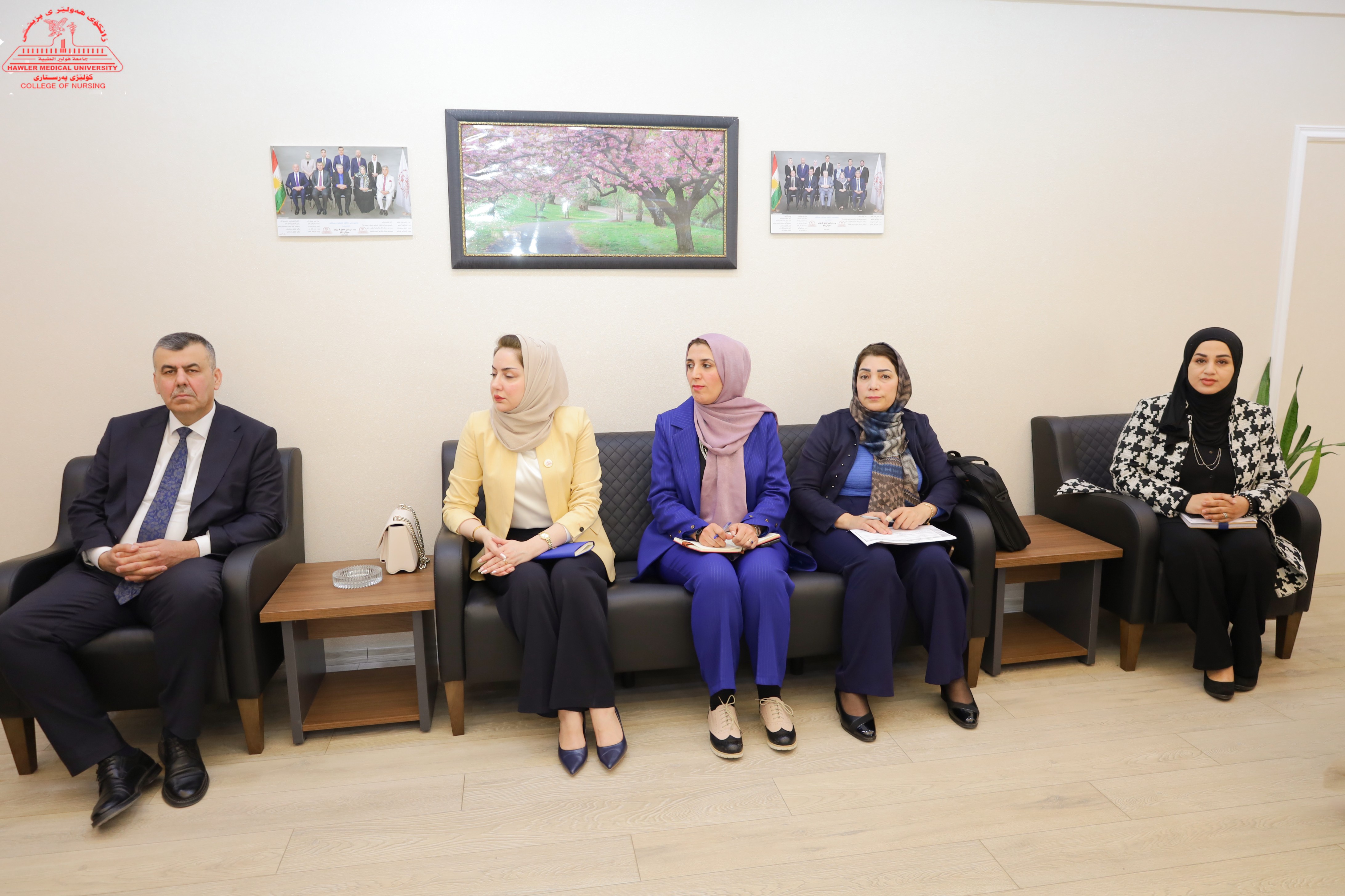 Prof. Dr. Al-Dabbagh was accompanied by Vice President Assistant Professor Dr. Hawri M. Baker and Vice President for Student Affairs Assistant Professor Dr. Karwan M. Amin. The delegation was received by Assistant Professor Dr. Vian Al-Naqshbandi, Dean of the College of Nursing, together with members of the college Council and Head of managerial Units.